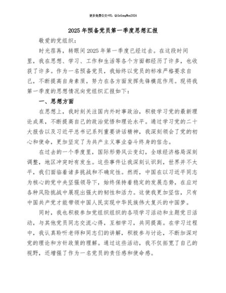 【七哥公文】2025年:【七哥公文】2025年预备党员第一、二季度思想汇报+更多免费公文+VX:QiGeGongWen2024+更多免费公文+VX:QiGeGongWen2024