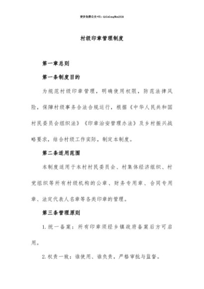 【七哥公文】2025年:【七哥公文】13.村级印章管理制度+更多免费公文+VX:QiGeGongWen2024+更多免费公文+VX:QiGeGongWen2024