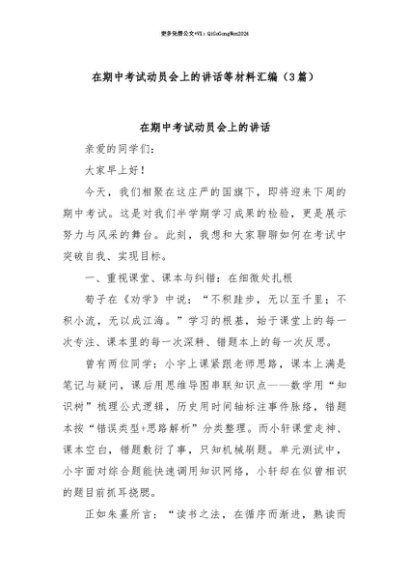 【七哥公文】2025年:【七哥公文】(3篇)在期中考试动员会上的讲话等材料汇编+更多免费公文+VX:QiGeGongWen2024+更多免费公文+VX:QiGeGongWen2024