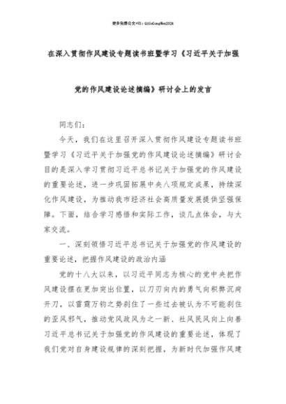 【七哥公文】2025年:【七哥公文】在深入贯彻作风建设专题读书班暨学习《总书记关于加强党的作风建设论述摘编》研讨会上的发言+更多免费公文+VX:QiGeGongWen2024+更多免费公文+VX:QiGeGongWen2024