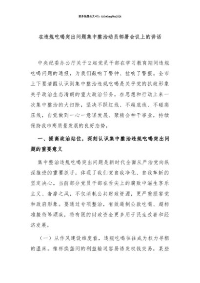 【七哥公文】2025年:【七哥公文】在违规吃喝突出问题集中整治动员部署会议上的讲话+更多免费公文+VX:QiGeGongWen2024+更多免费公文+VX:QiGeGongWen2024