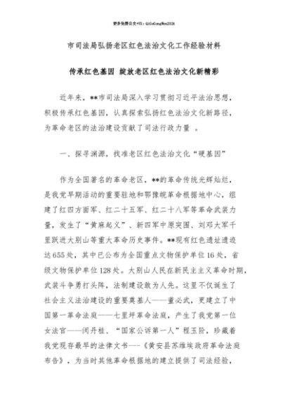 【七哥公文】2025年:【七哥公文】市司法局弘扬老区红色法治文化工作经验材料+更多免费公文+VX:QiGeGongWen2024+更多免费公文+VX:QiGeGongWen2024