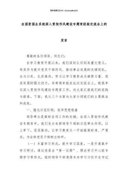 【七哥公文】2025年:【七哥公文】在国资国企系统深入贯彻作风建设专题育经验交流会上的发言+更多免费公文+VX:QiGeGongWen2024+更多免费公文+VX:QiGeGongWen2024
