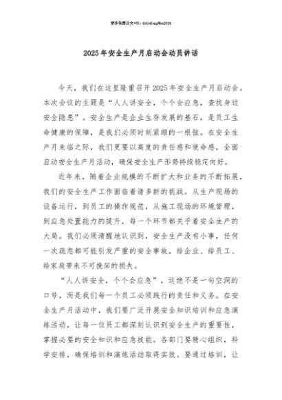 【七哥公文】2025年:【七哥公文】2025年安全生产月启动会动员讲话+更多免费公文+VX:QiGeGongWen2024+更多免费公文+VX:QiGeGongWen2024