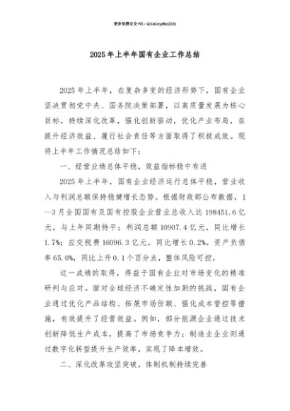 【七哥公文】2025年:【七哥公文】2025年上半年国有企业工作总结+更多免费公文+VX:QiGeGongWen2024+更多免费公文+VX:QiGeGongWen2024