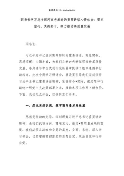 【七哥公文】2025年:【七哥公文】副市长学习总书记河南考察时的重要讲话心得体会:坚定信心、真抓实干,努力推动高质量发展+更多免费公文+VX:QiGeGongWen2024+更多免费公文+VX:QiGeGongWen2024
