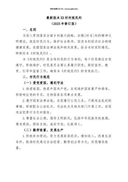 【七哥公文】2025年:【七哥公文】18.最新版本XX村村规民约(乡村振兴版)+更多免费公文+VX:QiGeGongWen2024+更多免费公文+VX:QiGeGongWen2024