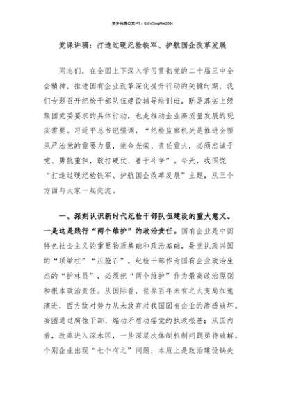 【七哥公文】2025年:【七哥公文】党课讲稿:打造过硬纪检铁军、护航国企改革发展+更多免费公文+VX:QiGeGongWen2024+更多免费公文+VX:QiGeGongWen2024