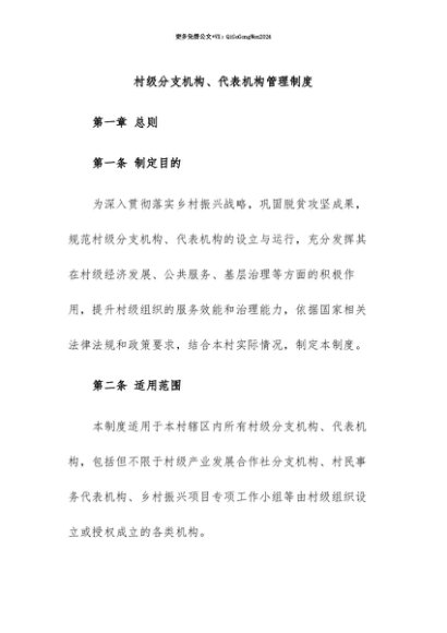 【七哥公文】2025年:【七哥公文】6.村级分支机构、代表机构管理制度+更多免费公文+VX:QiGeGongWen2024+更多免费公文+VX:QiGeGongWen2024