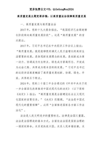 【七哥公文】2025年:高质量发展主题党课讲稿:以高质量法治保障高质量发展+更多免费公文+VX:QiGeGongWen2024+更多免费公文+VX:QiGeGongWen2024
