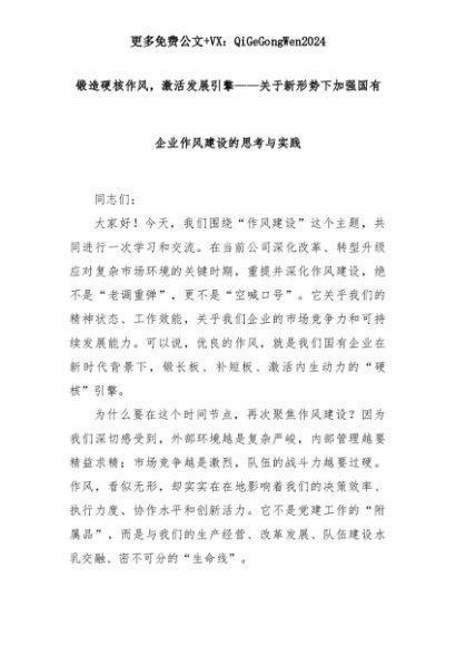 【七哥公文】2025年:锻造硬核作风,激活发展引擎——关于新形势下加强国有企业作风建设的思考与实践+更多免费公文+VX:QiGeGongWen2024+更多免费公文+VX:QiGeGongWen2024