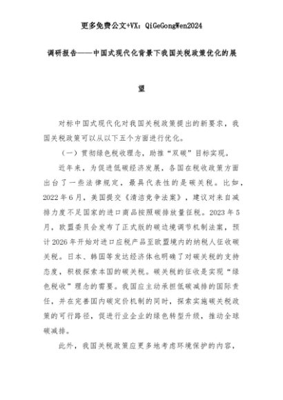 【七哥公文】2025年:调研报告——中国式现代化背景下我国关税政策优化的展望+更多免费公文+VX:QiGeGongWen2024+更多免费公文+VX:QiGeGongWen2024