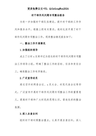 【七哥公文】2025年:村干部作风问题专项整治报告+更多免费公文+VX:QiGeGongWen2024+更多免费公文+VX:QiGeGongWen2024