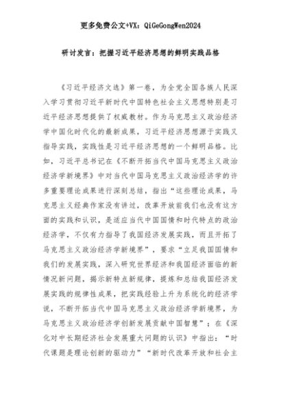 【七哥公文】2025年:研讨发言:把握习近平经济思想的鲜明实践品格+更多免费公文+VX:QiGeGongWen2024+更多免费公文+VX:QiGeGongWen2024