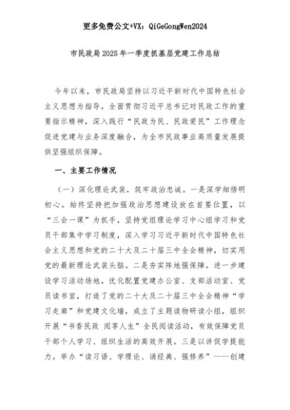 【七哥公文】2025年:市民政局2025年一季度抓基层党建工作总结+更多免费公文+VX:QiGeGongWen2024+更多免费公文+VX:QiGeGongWen2024