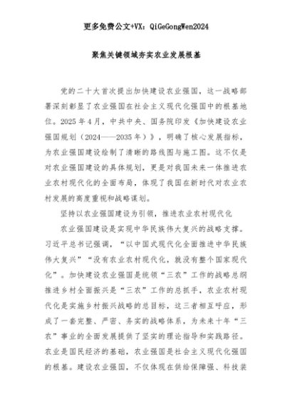 【七哥公文】2025年:聚焦关键领域夯实农业发展根基+更多免费公文+VX:QiGeGongWen2024+更多免费公文+VX:QiGeGongWen2024