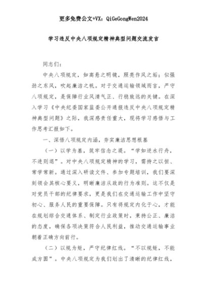 【七哥公文】2025年:学习违反中央八项规定精神典型问题交流发言+更多免费公文+VX:QiGeGongWen2024+更多免费公文+VX:QiGeGongWen2024