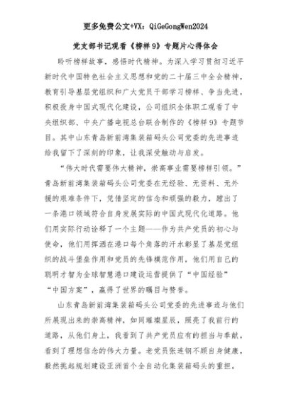 【七哥公文】2025年:党支部书记观看《榜样9》专题片心得体会+更多免费公文+VX:QiGeGongWen2024+更多免费公文+VX:QiGeGongWen2024
