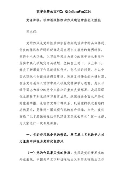 【七哥公文】2025年:党课讲稿:以学思践悟推动作风建设常态化长效化+更多免费公文+VX:QiGeGongWen2024+更多免费公文+VX:QiGeGongWen2024