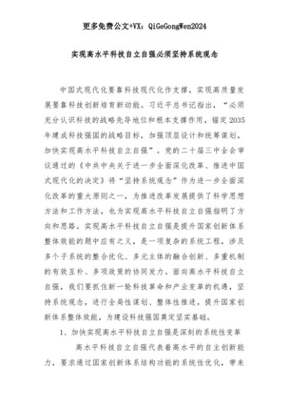 【七哥公文】2025年:实现高水平科技自立自强必须坚持系统观念+更多免费公文+VX:QiGeGongWen2024+更多免费公文+VX:QiGeGongWen2024