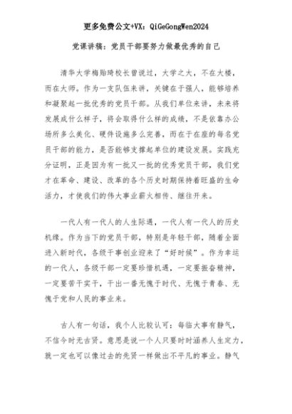 【七哥公文】2025年:党课讲稿:党员干部要努力做最优秀的自己+更多免费公文+VX:QiGeGongWen2024+更多免费公文+VX:QiGeGongWen2024