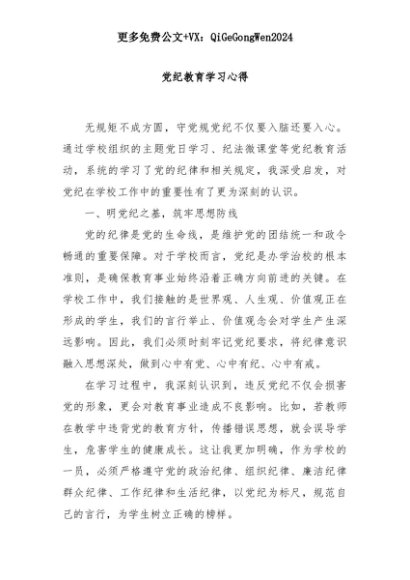【七哥公文】2025年:党纪教育学习心得+更多免费公文+VX:QiGeGongWen2024+更多免费公文+VX:QiGeGongWen2024