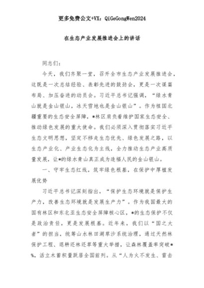 【七哥公文】2025年:在生态产业发展推进会上的讲话+更多免费公文+VX:QiGeGongWen2024+更多免费公文+VX:QiGeGongWen2024