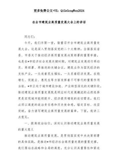 【七哥公文】2025年:在全市建筑业高质量发展大会上的讲话+更多免费公文+VX:QiGeGongWen2024+更多免费公文+VX:QiGeGongWen2024