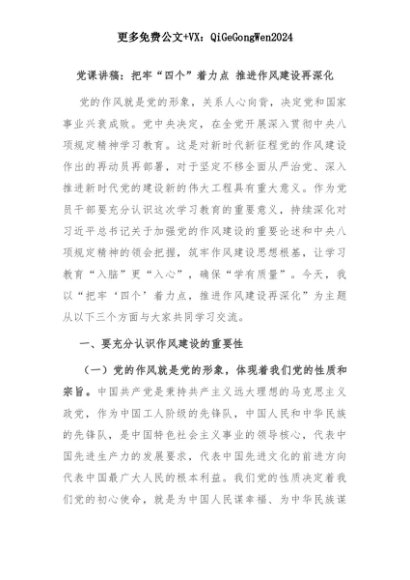 【七哥公文】2025年:党课讲稿:把牢“四个”着力点 推进作风建设再深化+更多免费公文+VX:QiGeGongWen2024+更多免费公文+VX:QiGeGongWen2024