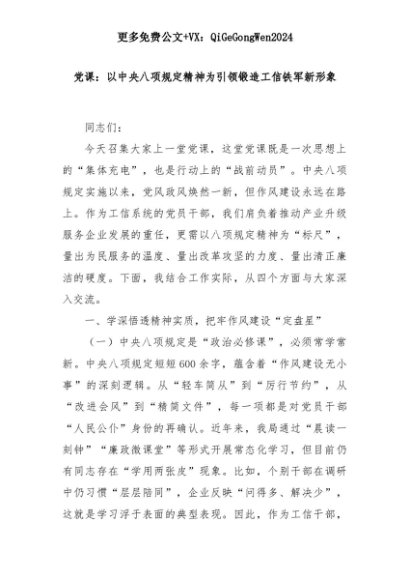 【七哥公文】2025年:党课:以中央八项规定精神为引领锻造工信铁军新形象+更多免费公文+VX:QiGeGongWen2024+更多免费公文+VX:QiGeGongWen2024