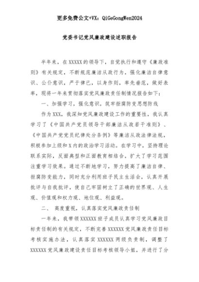 【七哥公文】2025年:党委书记党风廉政建设述职报告+更多免费公文+VX:QiGeGongWen2024+更多免费公文+VX:QiGeGongWen2024