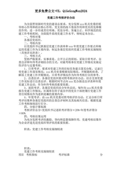 【七哥公文】2025年:党建工作考核评价办法+更多免费公文+VX:QiGeGongWen2024+更多免费公文+VX:QiGeGongWen2024