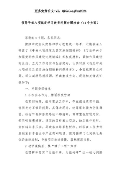 【七哥公文】2025年:领导干部八项规定学习教育问题对照检查(11个方面)+更多免费公文+VX:QiGeGongWen2024+更多免费公文+VX:QiGeGongWen2024