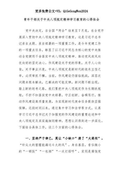 【七哥公文】2025年:青年干部关于中央八项规定精神学习教育的心得体会+更多免费公文+VX:QiGeGongWen2024+更多免费公文+VX:QiGeGongWen2024