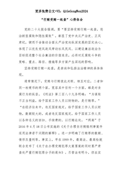 【七哥公文】2025年:“行贿受贿一起查”心得体会+更多免费公文+VX:QiGeGongWen2024+更多免费公文+VX:QiGeGongWen2024