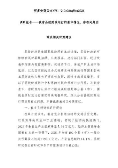 【七哥公文】2025年:调研报告——我省县级财政运行的基本情况、存在问题困难及相关对策建议+更多免费公文+VX:QiGeGongWen2024+更多免费公文+VX:QiGeGongWen2024
