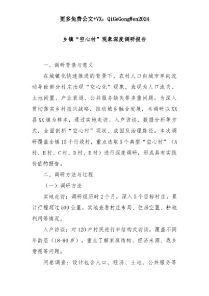 【七哥公文】2025年:乡镇“空心村”现象深度调研报告+更多免费公文+VX:QiGeGongWen2024+更多免费公文+VX:QiGeGongWen2024