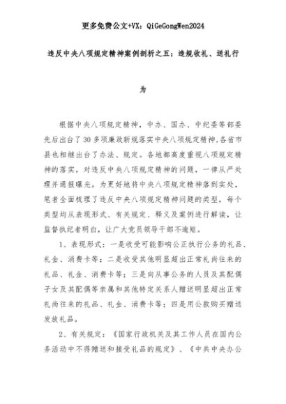 【七哥公文】2025年:违反中央八项规定精神案例剖析之五:违规收礼、送礼行为+更多免费公文+VX:QiGeGongWen2024+更多免费公文+VX:QiGeGongWen2024