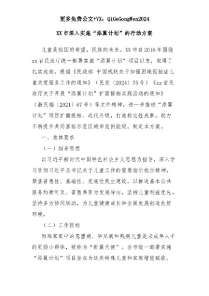 【七哥公文】2025年:XX市深入实施“添翼计划”的行动方案+更多免费公文+VX:QiGeGongWen2024+更多免费公文+VX:QiGeGongWen2024