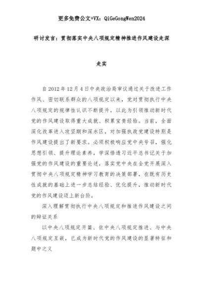 【七哥公文】2025年:研讨发言:贯彻落实中央八项规定精神推进作风建设走深走实+更多免费公文+VX:QiGeGongWen2024+更多免费公文+VX:QiGeGongWen2024