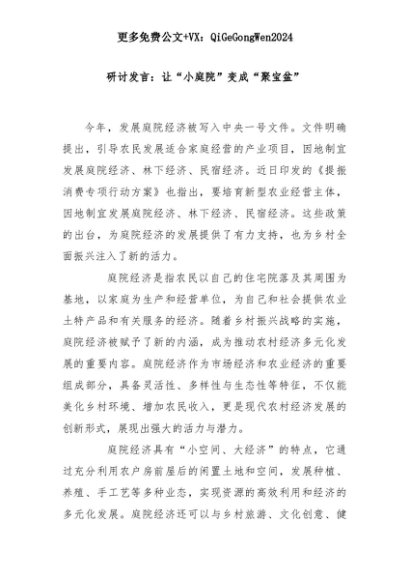 【七哥公文】2025年:研讨发言:让“小庭院”变成“聚宝盆”+更多免费公文+VX:QiGeGongWen2024+更多免费公文+VX:QiGeGongWen2024