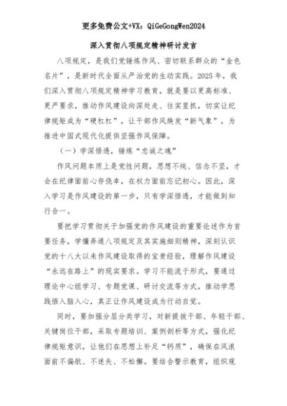 【七哥公文】2025年:深入贯彻八项规定精神研讨发言+更多免费公文+VX:QiGeGongWen2024+更多免费公文+VX:QiGeGongWen2024
