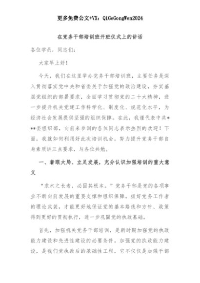 【七哥公文】2025年:在党务干部培训班开班仪式上的讲话+更多免费公文+VX:QiGeGongWen2024+更多免费公文+VX:QiGeGongWen2024