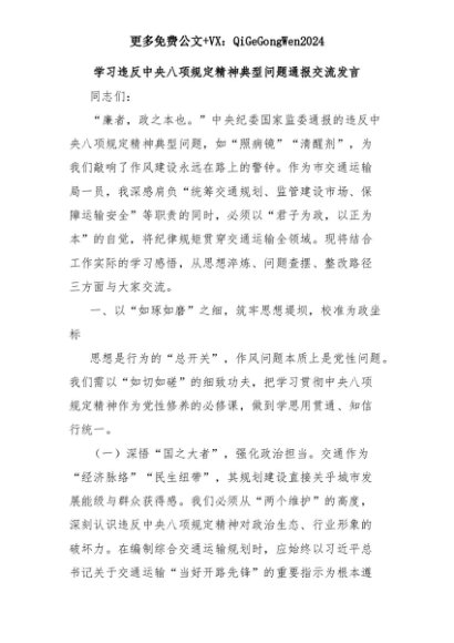 【七哥公文】2025年:学习违反中央八项规定精神典型问题通报交流发言+更多免费公文+VX:QiGeGongWen2024+更多免费公文+VX:QiGeGongWen2024