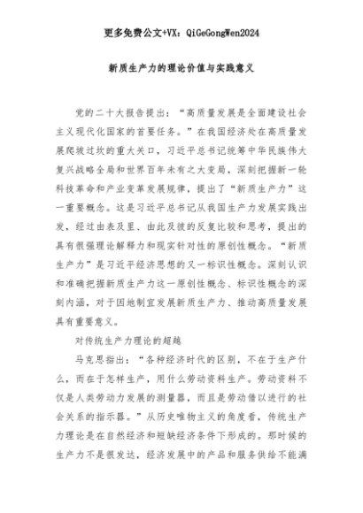 【七哥公文】2025年:新质生产力的理论价值与实践意义+更多免费公文+VX:QiGeGongWen2024+更多免费公文+VX:QiGeGongWen2024