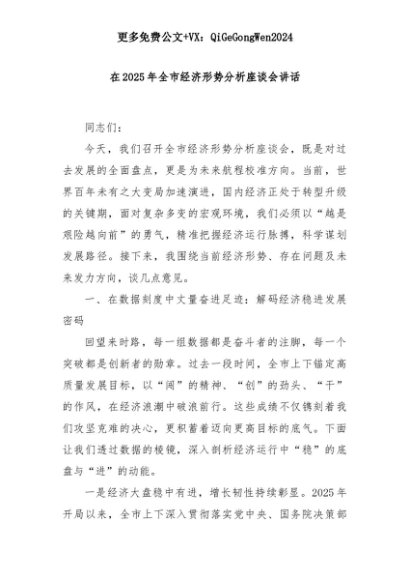 【七哥公文】2025年:在2025年全市经济形势分析座谈会讲话+更多免费公文+VX:QiGeGongWen2024+更多免费公文+VX:QiGeGongWen2024