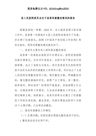 【七哥公文】2025年:县人民医院委员会关于县委巡察整改情况的报告+更多免费公文+VX:QiGeGongWen2024+更多免费公文+VX:QiGeGongWen2024