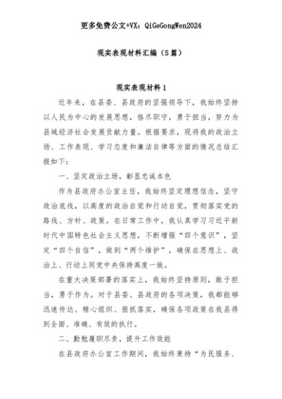 【七哥公文】2025年:(5篇)现实表现材料汇编+更多免费公文+VX:QiGeGongWen2024+更多免费公文+VX:QiGeGongWen2024