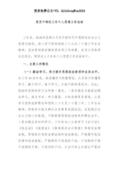 【七哥公文】2025年:党员干部近三年个人思想工作总结+更多免费公文+VX:QiGeGongWen2024+更多免费公文+VX:QiGeGongWen2024