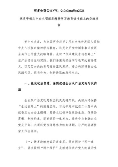 【七哥公文】2025年:党员干部在中央八项规定精神学习教育读书班上的交流发言+更多免费公文+VX:QiGeGongWen2024+更多免费公文+VX:QiGeGongWen2024